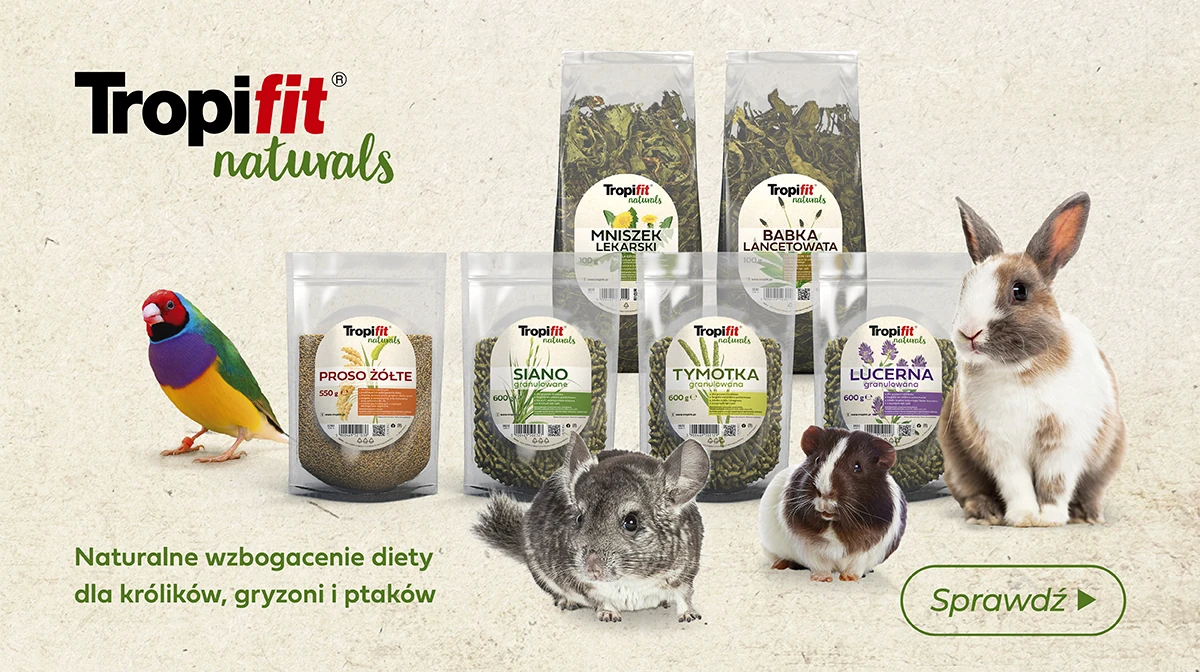 W Tropifit wierzymy, że naturalne składniki są podstawą zdrowej diety. Nasze karmy dla gryzoni, karmy dla królików, karmy dla jeży i fretek oraz karmy dla ptaków tworzymy z wyselekcjonowanych surowców. Dbamy o to, aby każda porcja dostarczała wszystkie niezbędne witaminy i składniki mineralne, wspierając zdrowie i witalność Twojego pupila.